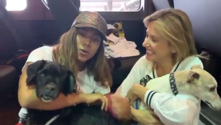 Anitta se encontrou com Luisa Mell, cujo instituto estava cuidando dos animais, para fazer a adoção. "Ela chegou e já adotou dois cachorros idosos, deficientes, Anitta eu te amo", disse a ativista.