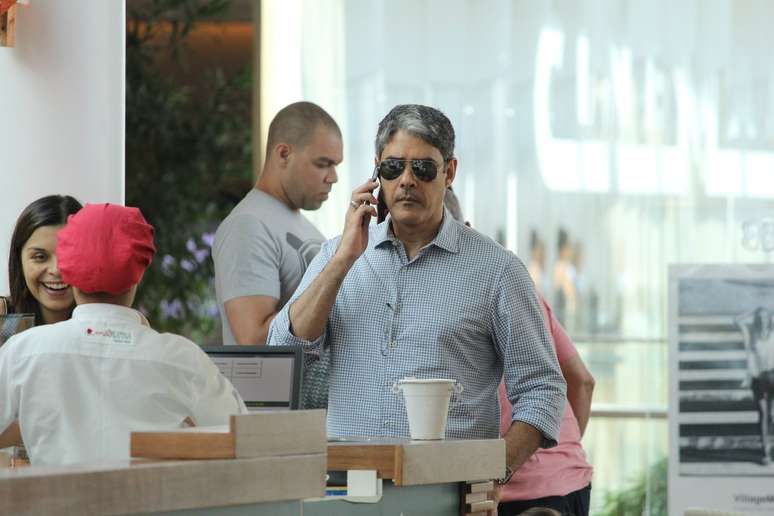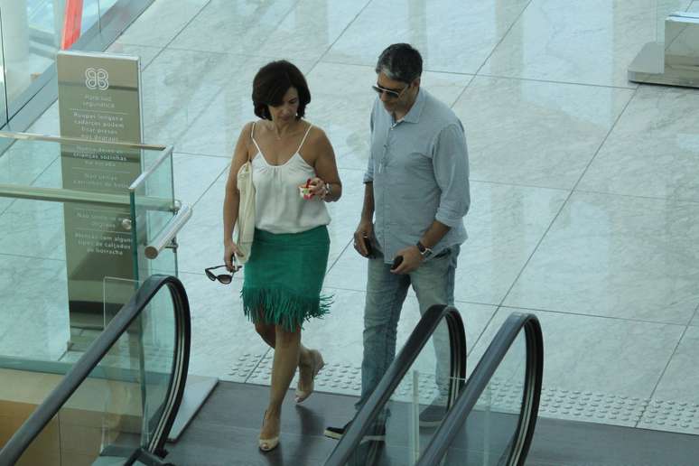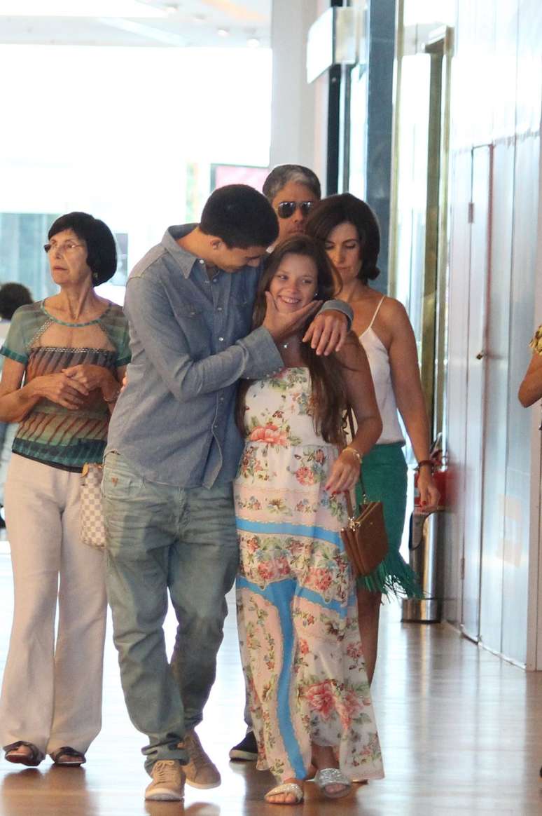 William Bonner e Fátima Bernardes foram almoçar com os filhos nesta segunda-feira (23), no shopping Village Mall na Barra da Tijuca. O filho do casal, Vinícius, levou a namorada e enquanto andavam abraçados, os dois trocaram beijos durante o passeio.