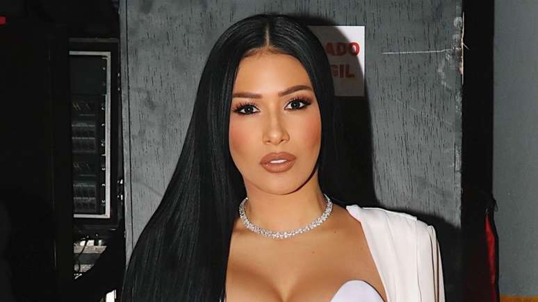 "Bom, gente, eu tinha um segredo pra contar pra vocês. Em 2021 ou 2022, eu fiz uma lipo, e está aqui o resultado", disse a irmã de Simone Mendes, mostrando o resultado do procedimento.
