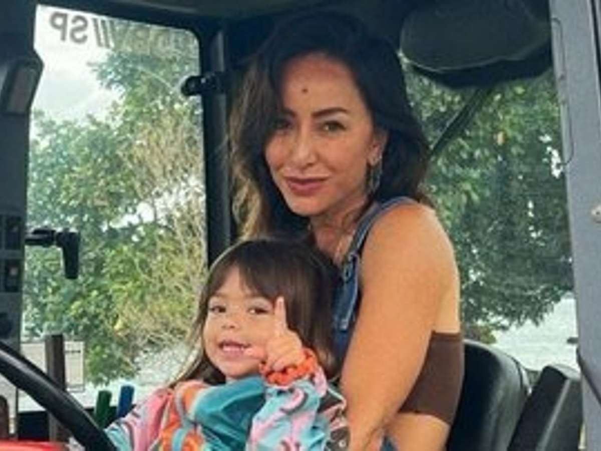 "Cantando uma música em japonês, sentada de costas para o cavalo", disse Sabrina ao gravar o vídeo da filha. O momento foi registrado durante uma aula de hipismo da pequena.