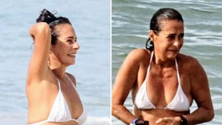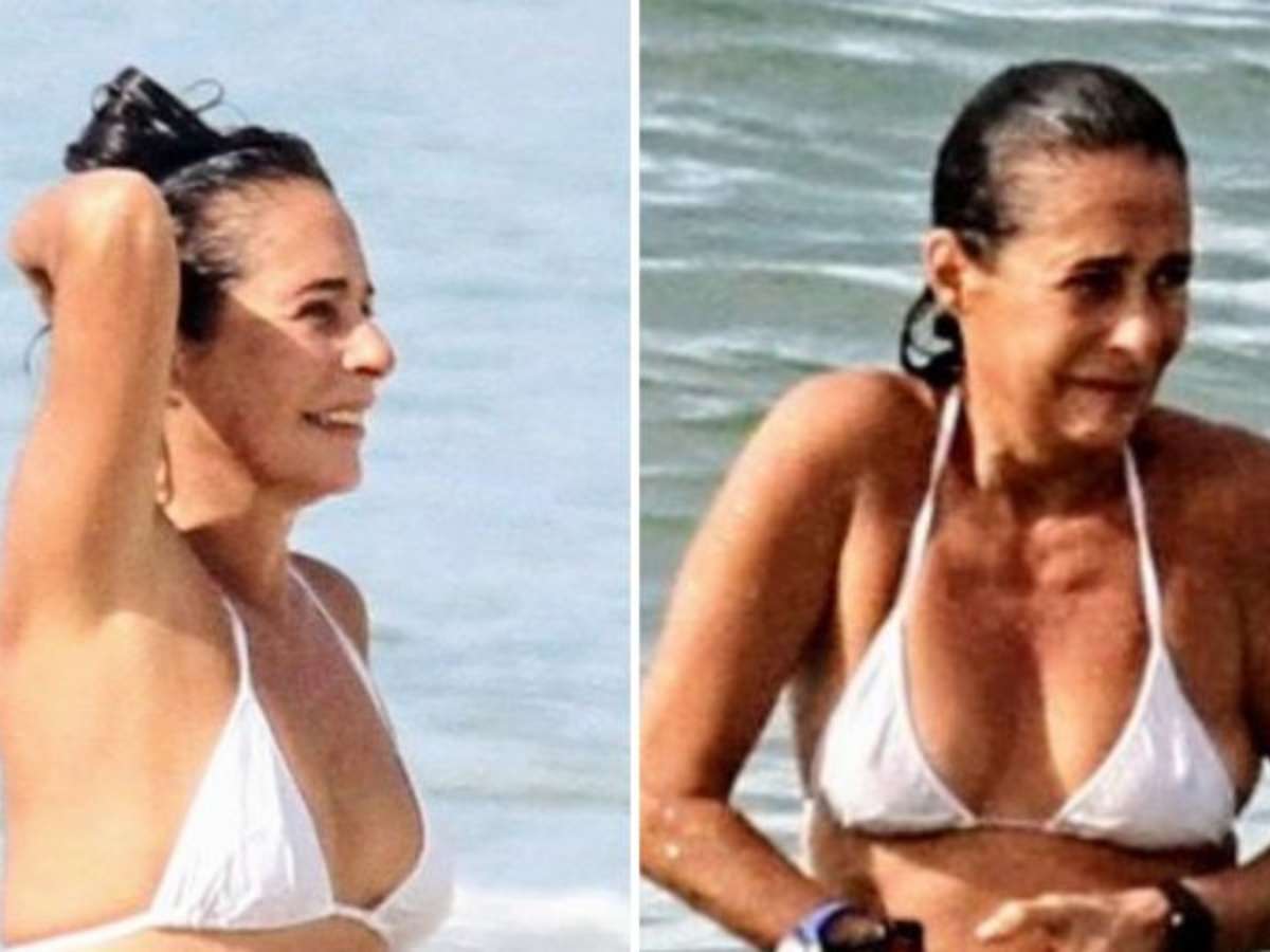 Aos 59 anos, Andréa Beltrão exibe corpo real e definido de biquíni branco