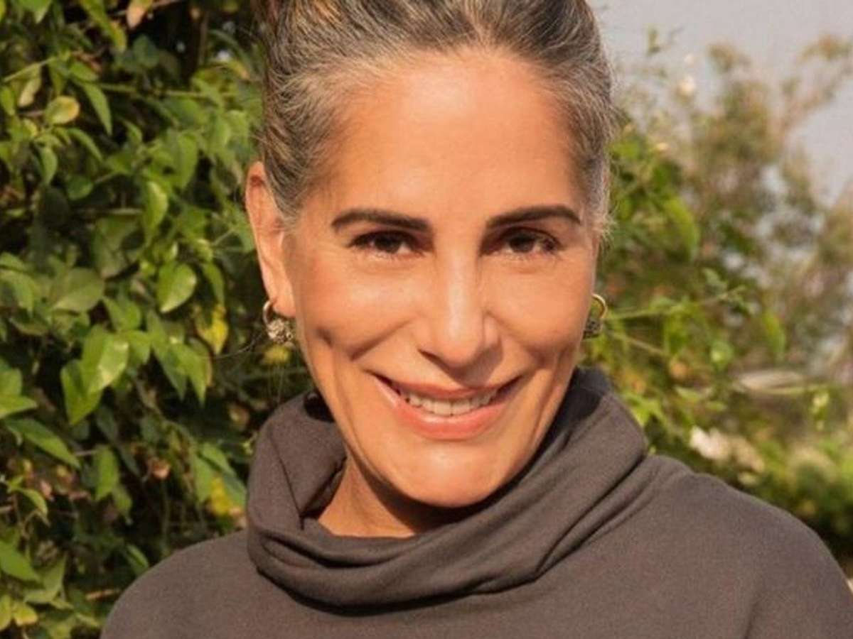 Aos 60, Gloria Pires exibe cintura fininha em cliques de cropped azul