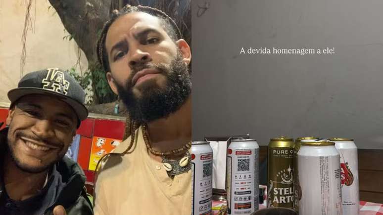 A publicação contém diversas latinhas de cerveja, caixas vazias de cigarro e um cinzeiro no centro de uma mesa. Na imagem em seguida, Drayson aparece sentado à mesa, rodeado por dois amigos, agradecendo a presença deles e a parceria. Por meio das fotos, o ator expressou sua saudades do irmão, dedicando o momento íntimo à ele já que eles não podem compartilhá-lo juntos.