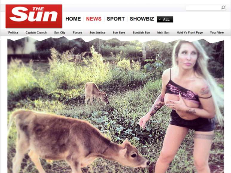 Esta semana, Sabrina Boing Boing chamou a atenção ao postar em seu Instagram fotos em que aparece tentando "amamentar" bezerros. As fotos fizeram tanto sucesso que foram parar no tablóide inglês The Sun.