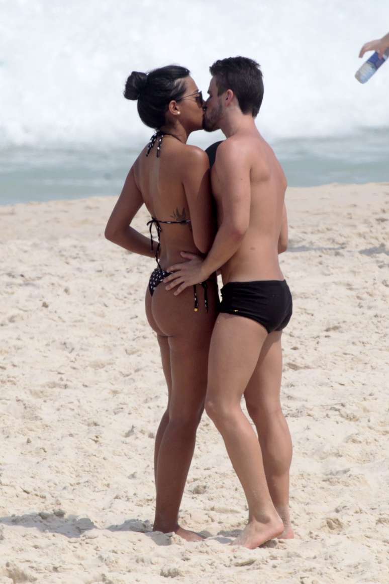 Após BBB, Talita e Rafael trocam beijos em praia no Rio