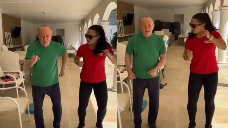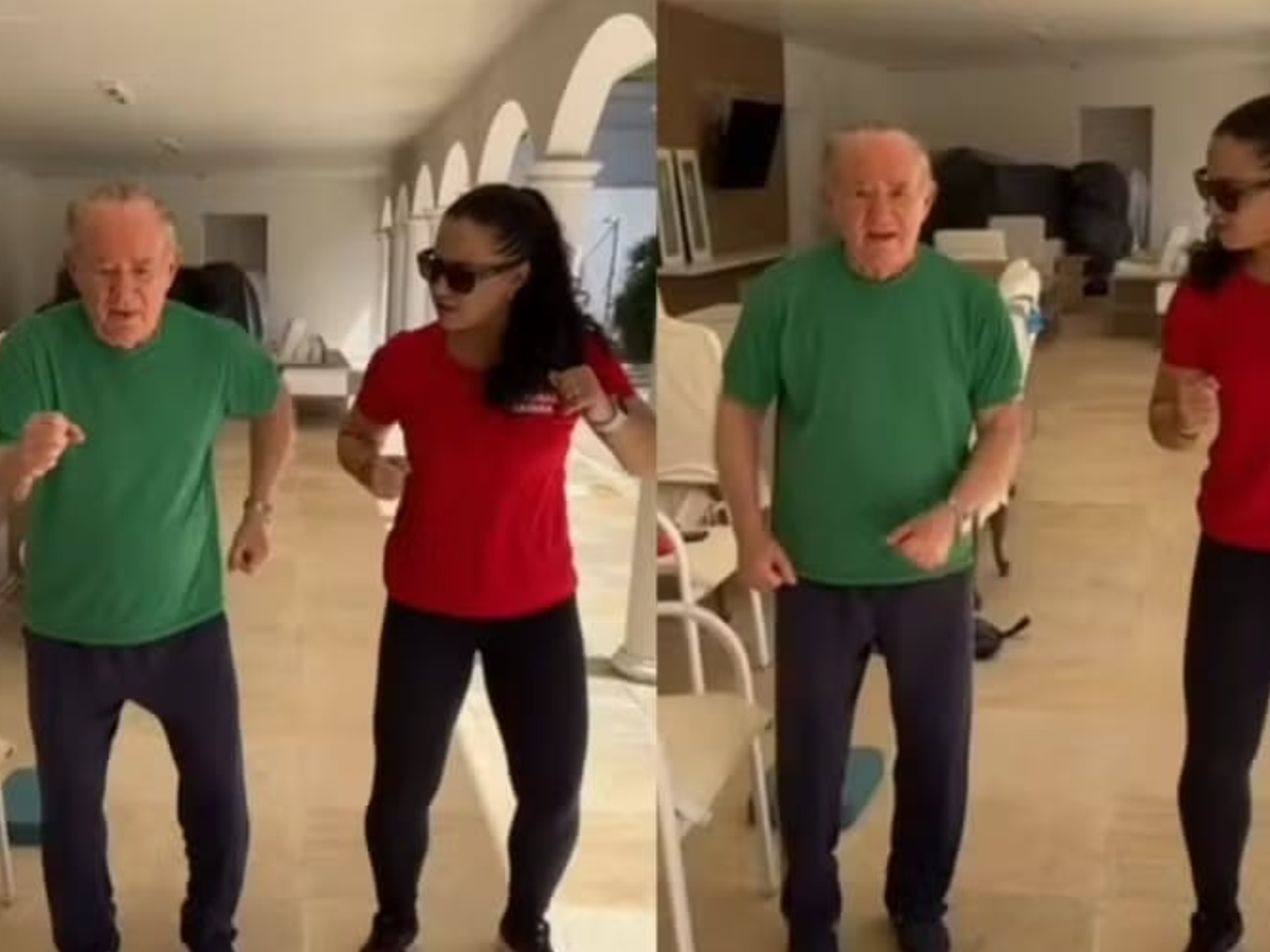 Após boatos nas redes sociais sobre uma possível internação em asilo, Renato Aragão apareceu em vídeo para tranquilizar os fãs. Aos 90 anos, o humorista mostrou-se bem disposto, fazendo exercícios e dançando ao lado de uma personal trainer. O registro foi feito em um espaço ao ar livre, na própria residência do artista, e divulgado logo após as falsas informações começarem a circular.