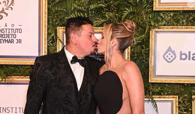 Após cirurgia, Lívia Andrade, com look diferentão, beija namorado e dribla orientação médica em leilão milionário de Neymar: 'Teimosa'
