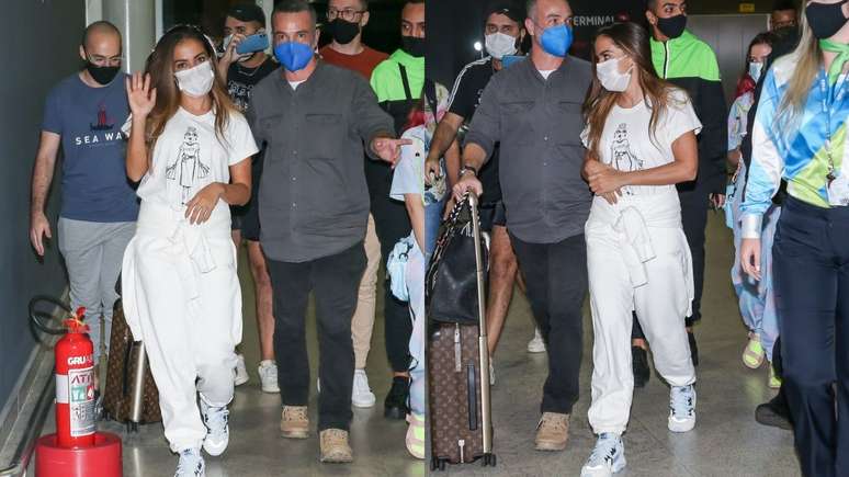 Após passar somente três dias no país, Anitta foi fotografada na manhã desta segunda-feira (7) no Aeroporto Internacional de Guarulhos, em São Paulo, deixando Brasil. Cercada por fãs e seguranças, a cantora acenou para os fotógrafos presentes no local.