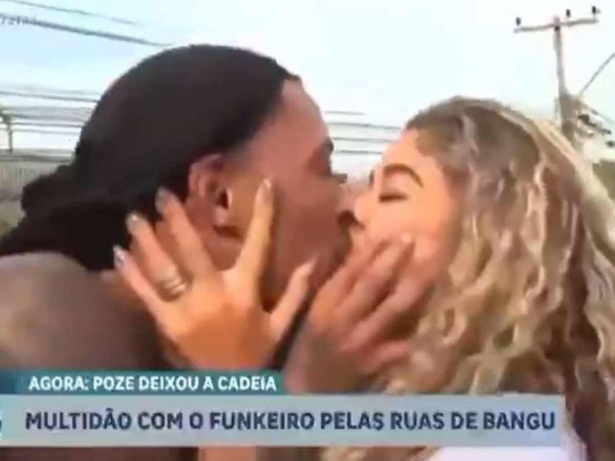 Após deixar a prisão na tarde desta terça-feira (3), no Complexo de Gericinó, em Bangu, Zona Oeste do Rio, o cantor Marlon Couto, conhecido como MC Poze do Rodo, 26, foi recebido por sua esposa, Viviane Noronha, 21, em meio a uma multidão de fãs.