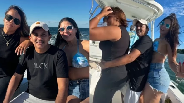 Poucos dias após anunciar o divórcio, Manoel Gomes, famoso pelo hit 'Caneta Azul', foi flagrado curtindo um passeio de lancha ao lado de duas mulheres