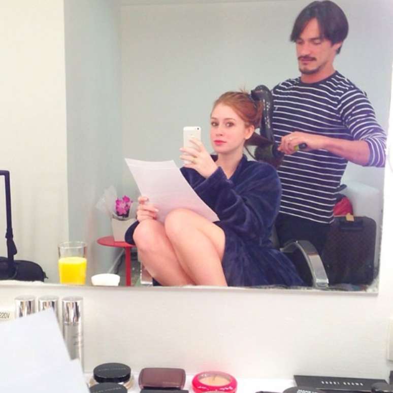 Marina Ruy Barbosa, que aproveitou a noite deste sábado (26) para ir à uma festa, acordou cedo na manhã do domingo 927) para trabalhar. Em seu Instagram, a atriz publicou uma foto durante a gravação de um comercial. "Bom dia! Domingão de chuva mas de muito trabalho! Gravando hoje uma campanha aqui em SP", escreveu na legenda.