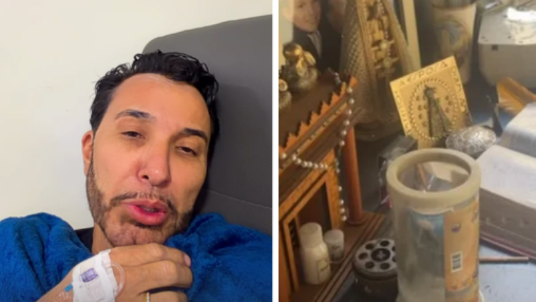Rogério também mostrou nos stories o único lugar de sua casa que não pegou fogo:um altar com objetos religiosos, incluindo uma Bíblia, que ficou intacta. "A casa inteira queimou, mas o cantinho da minha fé não queimou. Deus é bom", disse.