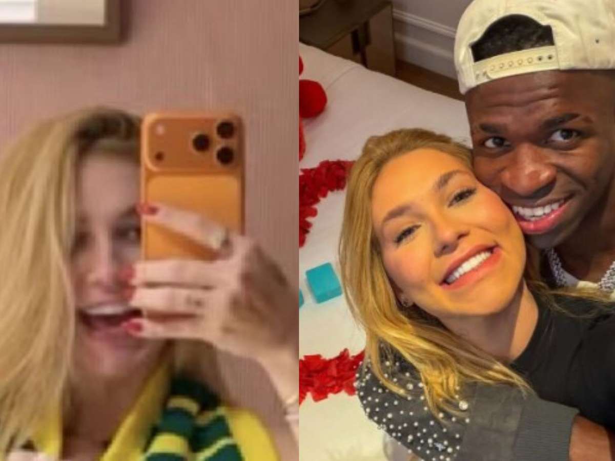 A segunda-feira (17) começou animada para Virginia Fonseca, que recorreu às redes sociais para exibir um presente nada comum que recebeu de Vini Jr. A influenciadora acompanhou o atacante no fim de semana, durante a partida da Seleção Brasileira em Londres, e ganhou dele uma faixa personalizada, com o próprio rosto do jogador estampado.