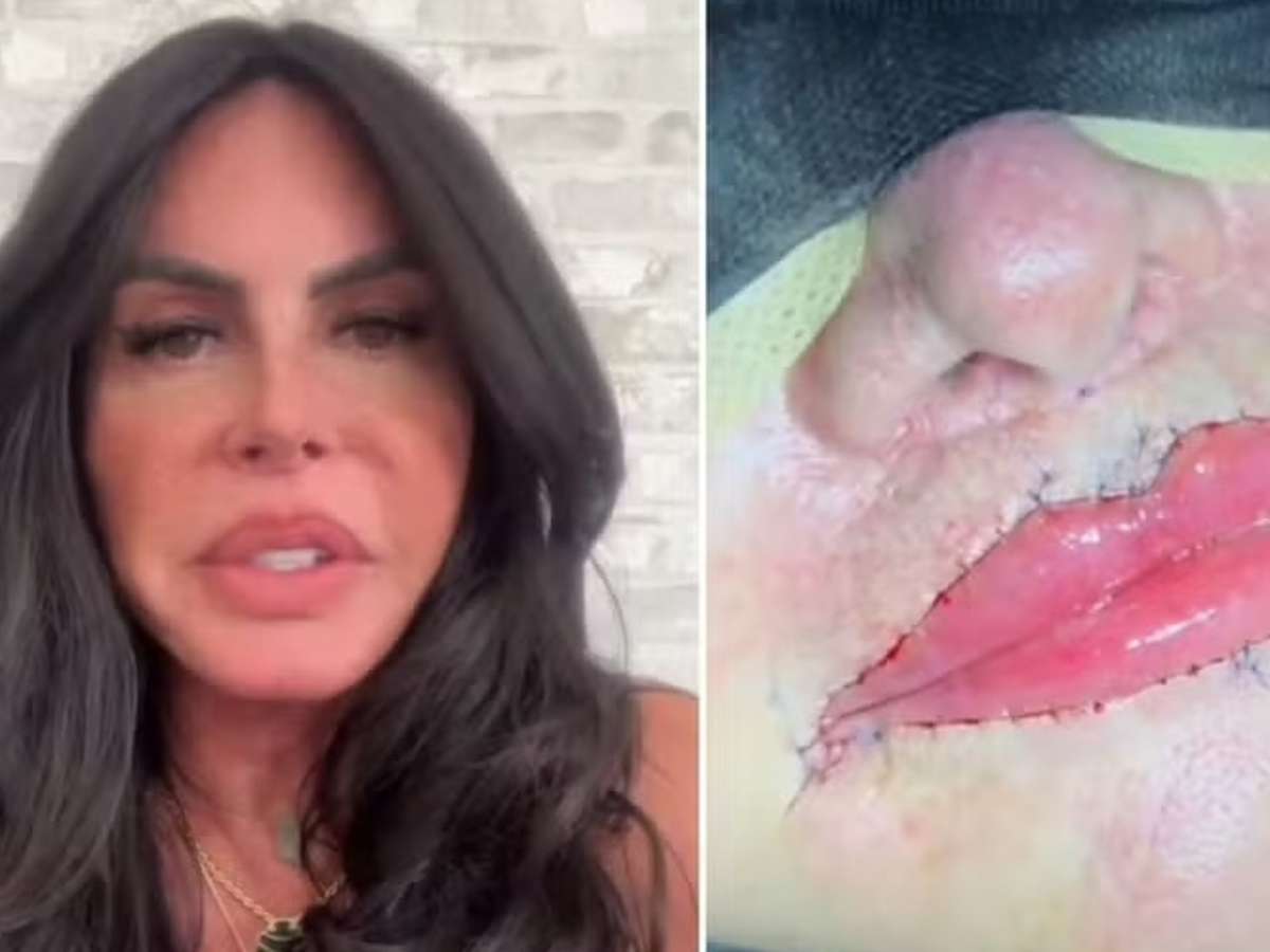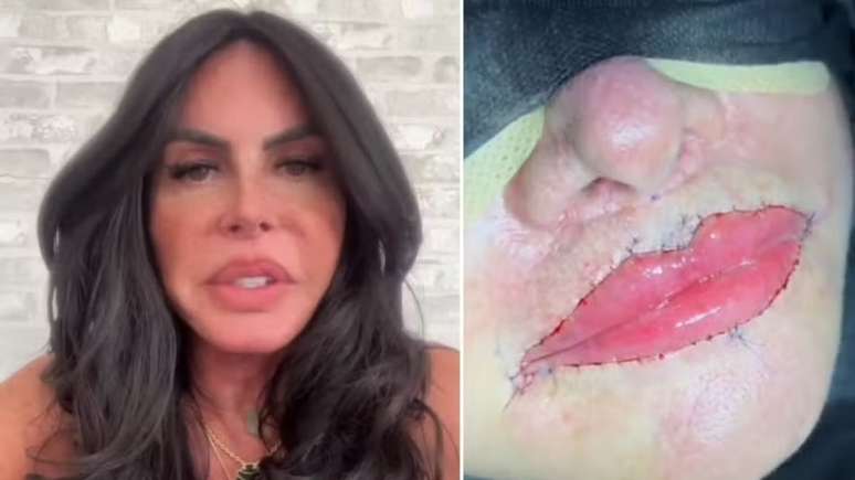 A artista, conhecida como a eterna Rainha do Bumbum, contou que passou por um lip lifting, cirurgia realizada abaixo do nariz, e também por cortes internos na boca para retirar completamente o PMMA.