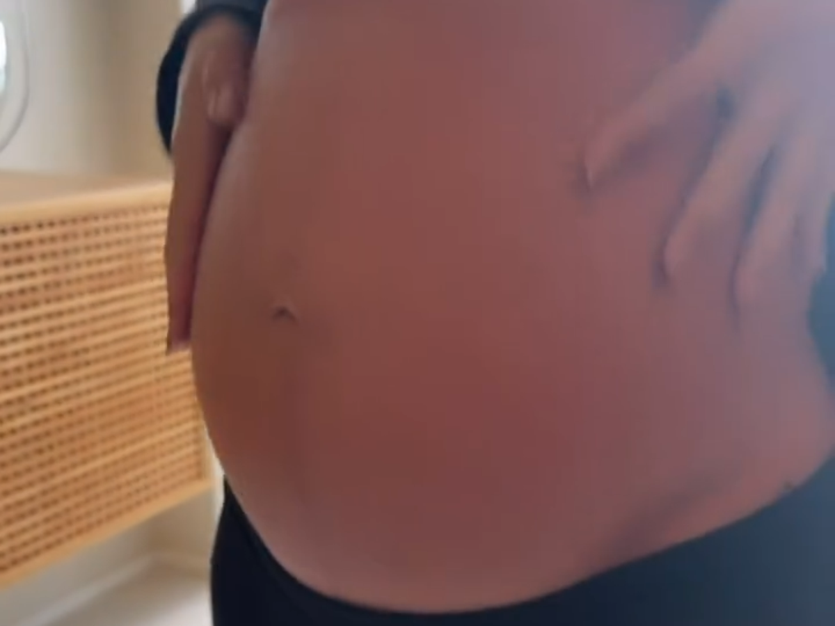 Ao voltar para casa depois de três semanas longe em turnê fora do Brasil, o cantor Thiaguinho se surpreendeu com o tamanho da barriga da companheira Carol Peixinho, que está grávida de seis meses.