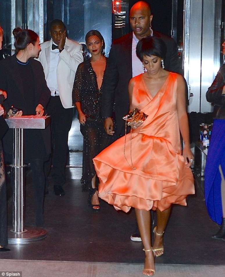 Já Beyoncé tentava disfarçar o arranca-rabo entre seu marido e sua irmã com um um sutil sorriso de serenidade. O disfarce teria dado certo, e talvez ninguem ficasse sabendo da briga, não fosse as imagens da câmera de segurança do elevador que vazaram e mostram as agressões de Solange em Jay-Z.