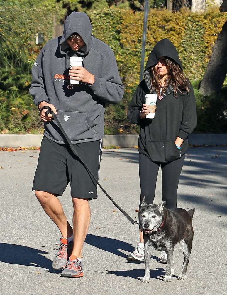 Ashton Kutcher e Mila Kunis tentam se esconder de paparazzi