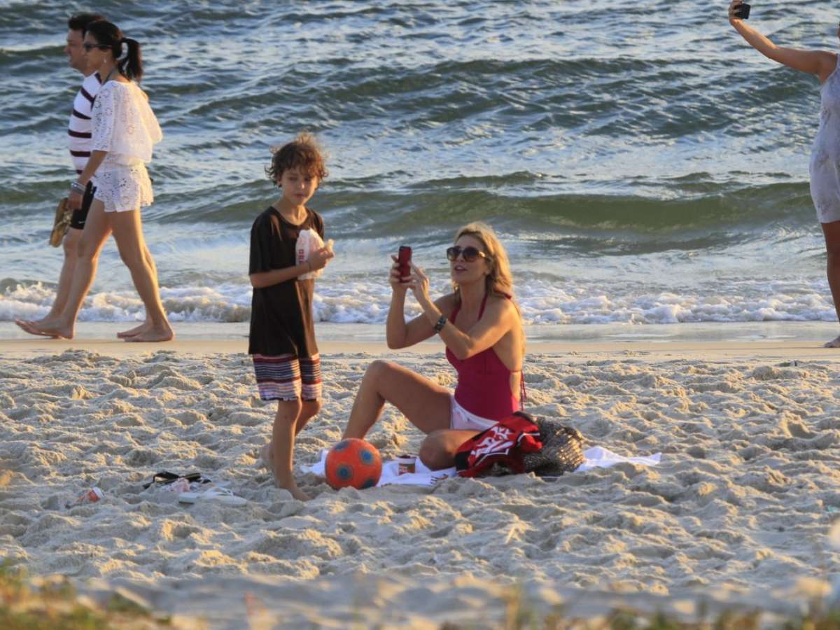 A atriz Christine Fernandes aproveitou o feriado da Proclamação da República brasileira, nesta sexta-feira (15), para curtir uma praia com o filho, Pedro, de 10 anos. Os dois estiveram nas areias Barra da Tijuca, na zona oeste do Rio de Janeiro.