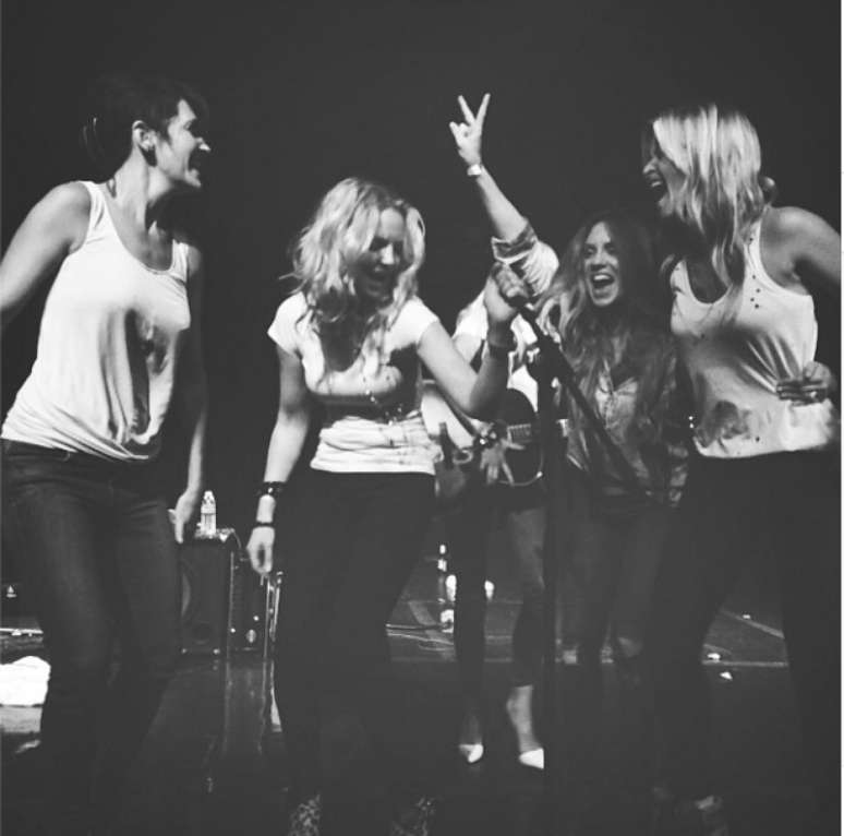 E a diversão não ficou só nas areias da praia não. Em outra imagem, as quatro amigas aparecem também cantando em cima de um palco.