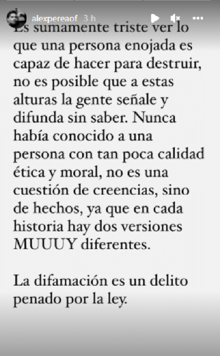 Um novo capítulo da novela real foi publicado na manhã desta quarta (9/3). O próprio Alex Perea a se manifestou, ainda que veladamente, sobre as acusações.