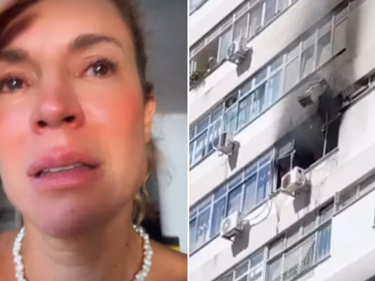 Atriz Maíra Charken chora ao mostrar apartamento que pegou fogo no Rio: ‘Horrível’