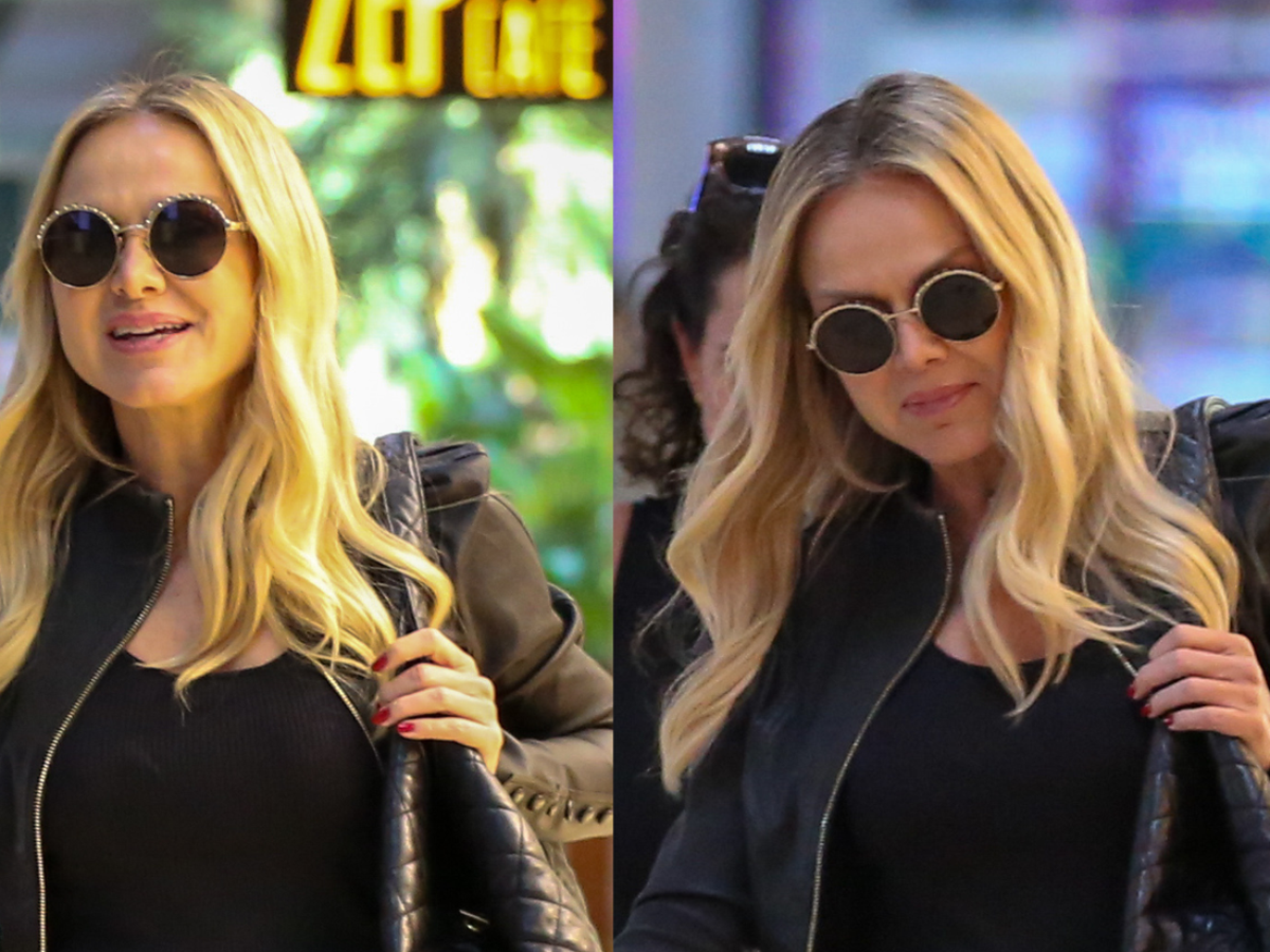 Eliana combinou uma camiseta preta básica com uma jaqueta preta com estética de couro. A estrela, alvo de um boato inusitado nos bastidores da Globo, ainda usou uma calça reta e solta, confirmando a proposta rocker do look. Os tênis de solado grosso também não passaram despercebidos.