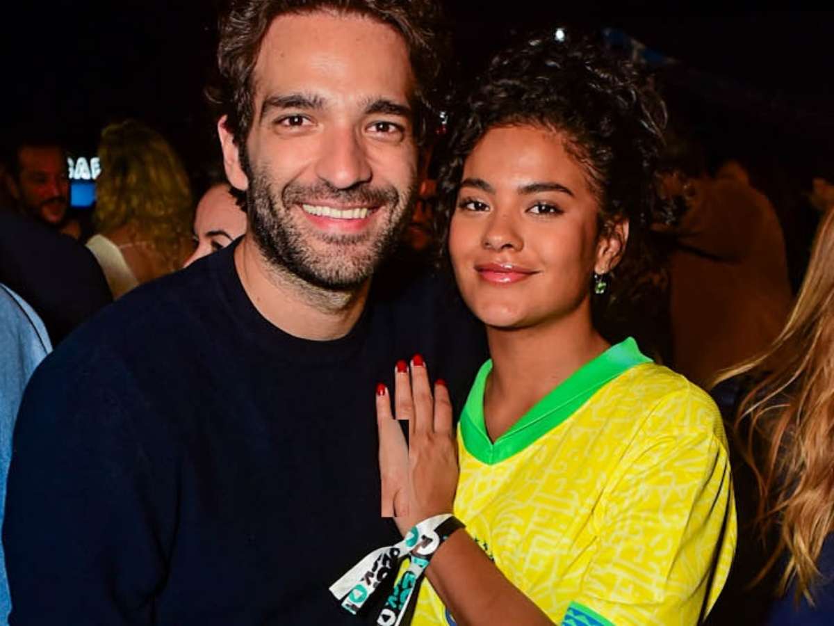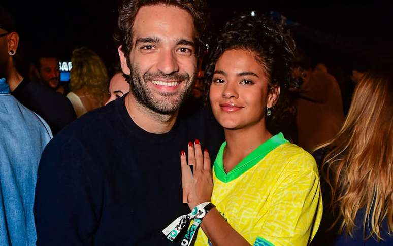 Bella Campos e Humberto Carrão posam juntos em festival de música no RJ