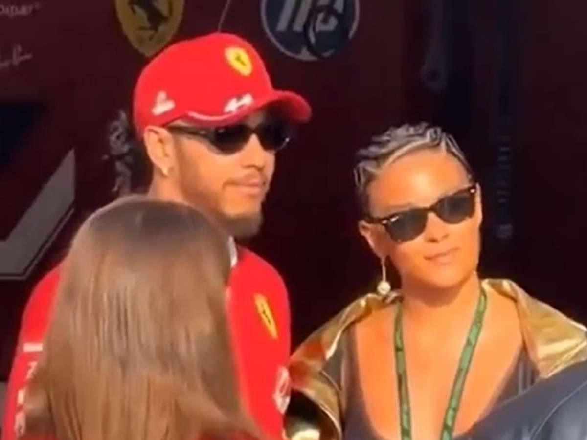 Bella Campos encontra Lewis Hamilton e brinca nas redes: 'Vim trazer sorte pro bofe'