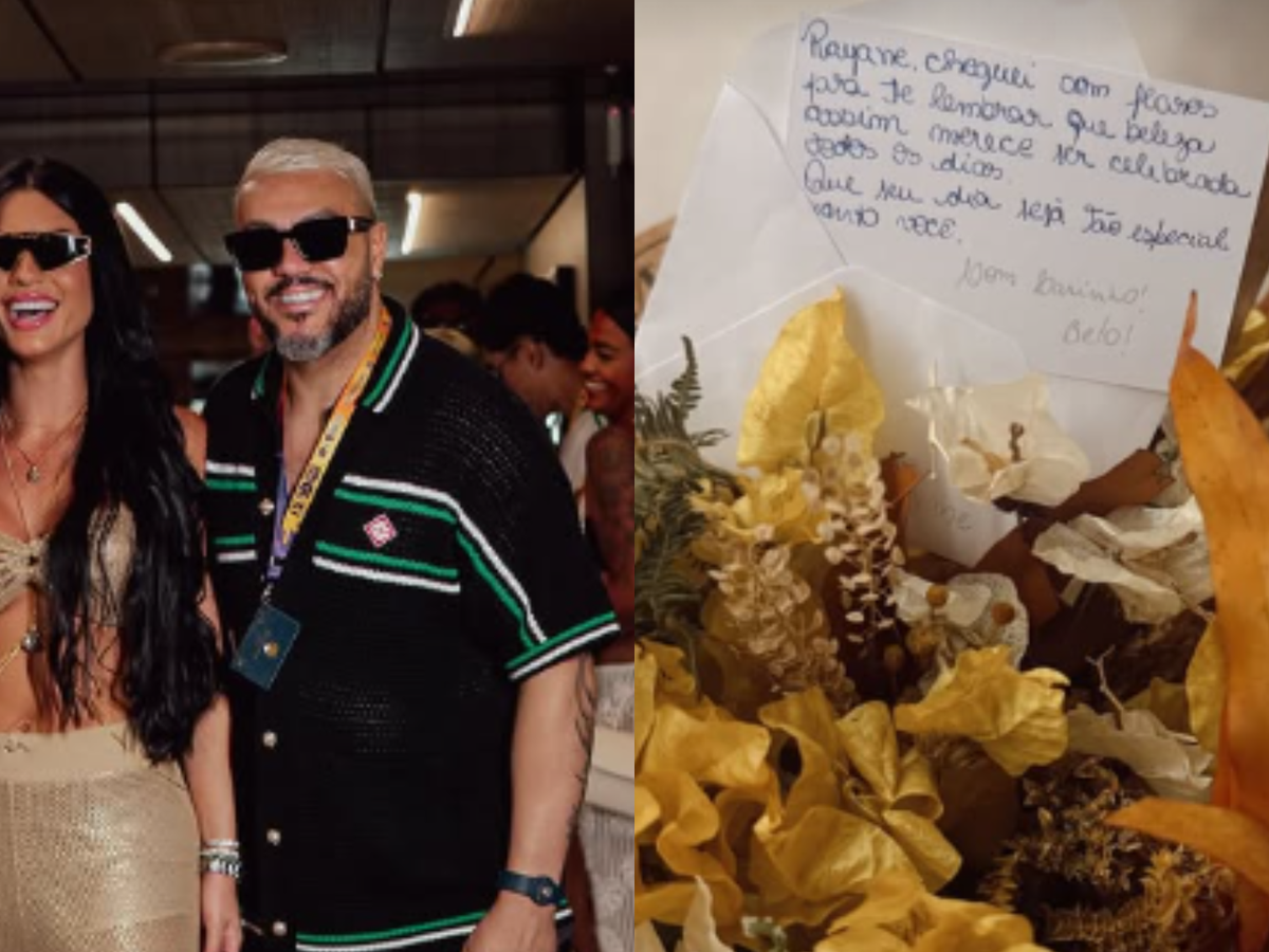 No bilhete que acompanhava as flores, o cantor escreveu: "Rayane, cheguei com flores para te lembrar que beleza assim merece ser celebrada todos os dias. Que seu dia seja tão especial quanto você. Com carinho, Belo."