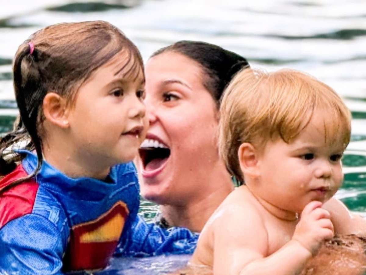 Super divertida, Ana brincou com as pequenas, que mostraram os resultados das aulas de natação que começaram logo nos primeiros anos de vida. Enquanto Maria Flor usou um maiô rosa com desenhos infantis, Maria Alice apareceu usando uma fantasia de super-herói, o que já virou assunto nas redes sociais de Virgínia.