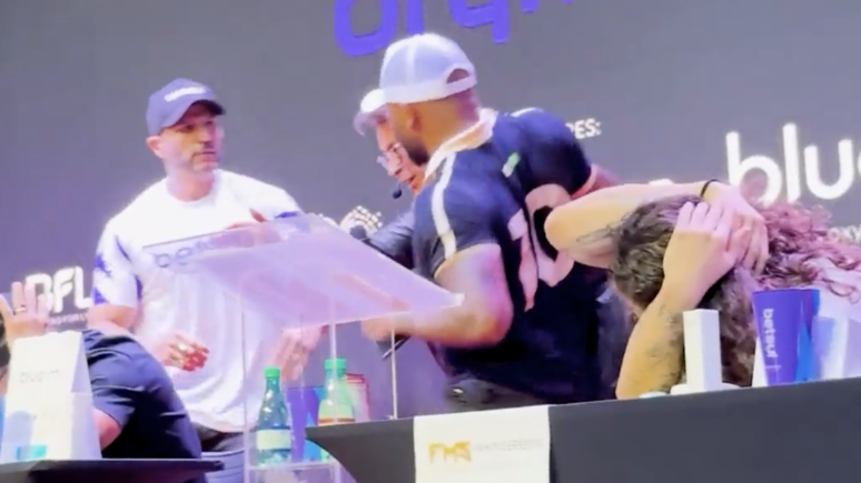 Briga! Davi Brito e Kleber Bambam precisam ser separados durante coletiva de imprensa