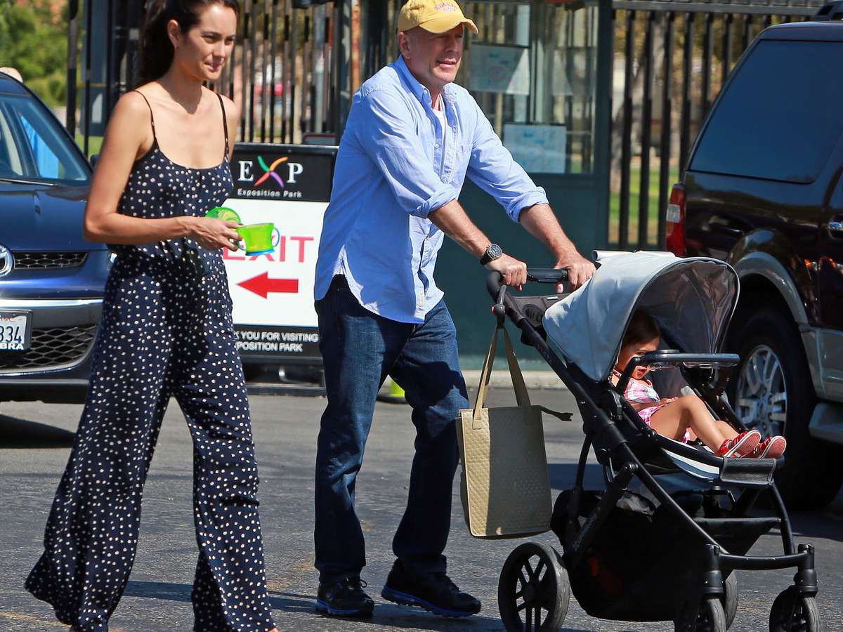 Bruce Willis empurra carrinho da filha caçula durante passeio