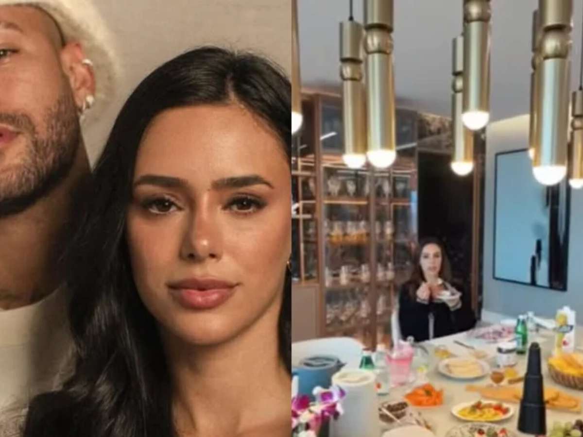 Bruna abriu as portas da propriedade e exibiu detalhes do espaço, incluindo a piscina com vista panorâmica. A influencer ainda mostrou o closet com a coleção de tênis de Neymar e as bolsas grifadas dela.