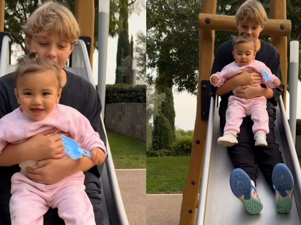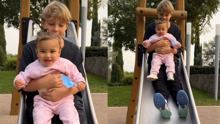 Neste sábado (16), Bruna Biancardi compartilhou um momento divertido entre os irmãos Mavie, de 1 ano, e Davi Lucca, de 13 anos. Em um vídeo publicado nas redes sociais, os dois aparecem brincando em um escorregador em Barcelona, na Espanha.