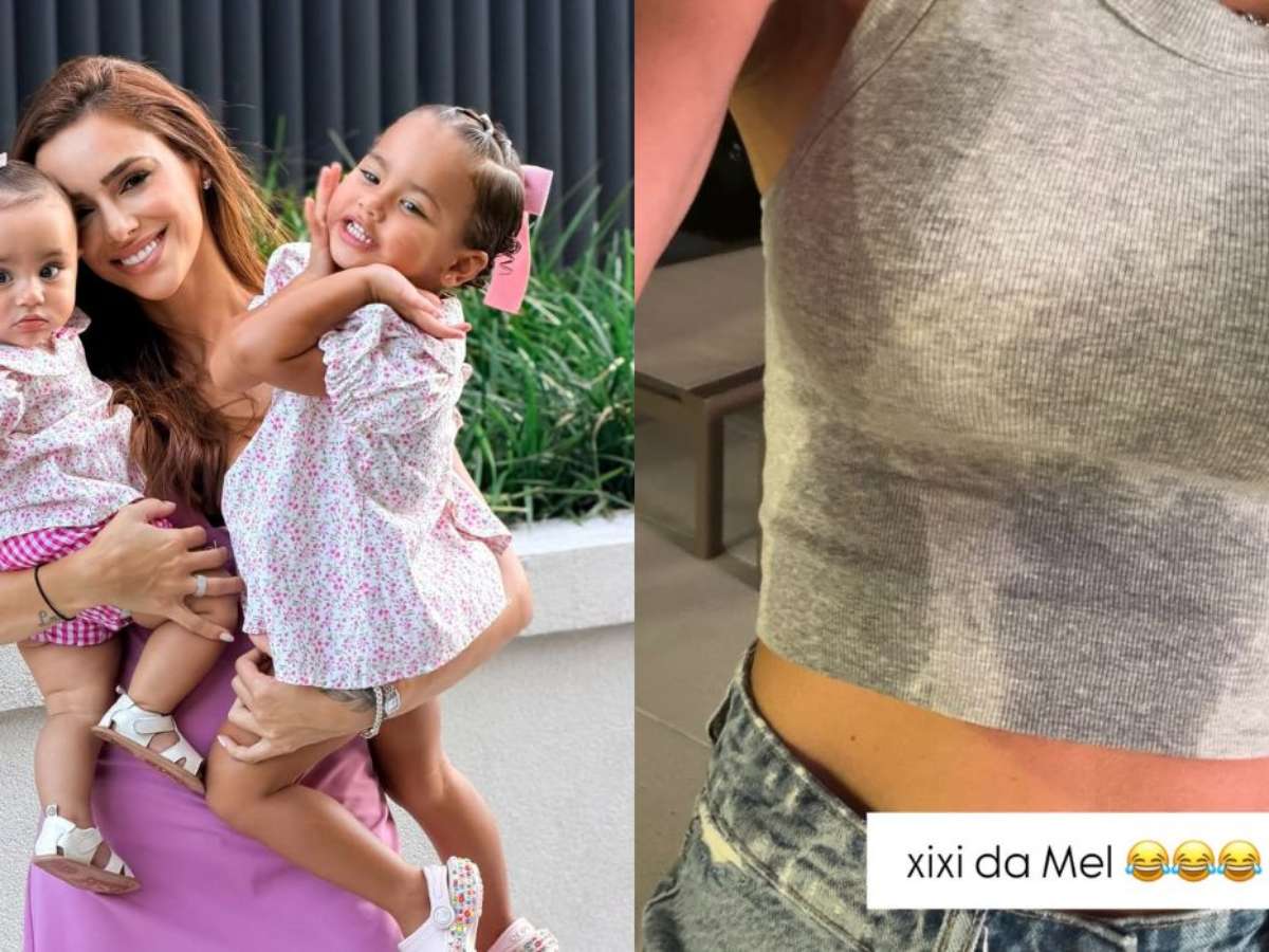 Apesar da vida de luxo, Bruna Biancardi mostrou que a maternidade ainda é feita de momentos inesperados. Nesta sexta-feira, 27, ela publicou registros do dia ao lado das filhas, Mavie, de 2 anos, e Mel, de 8 meses, do relacionamento com Neymar Jr.. Em uma das imagens, chamou atenção ao aparecer com a camiseta completamente molhada. O motivo? Xixi.