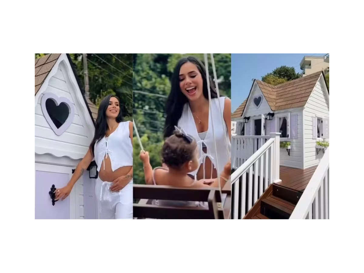 Neste último domingo (06), a influenciadora dividiu com seus fãs que ela e o craque do futebol presentearam as meninas com uma casinha de de 8,75m² com decoração em branco e lilás, avaliada em R$ 90 mil.