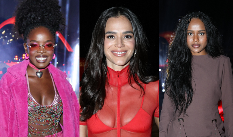 Houve espaço para outros tons também. Ao lado de Ludmilla, Brunna Gonçalves elegeu um vestido azul-claro de tecido acetinado, com manga longa e gola alta, enquanto Clara Moneke exibiu um pink vibrante em uma calça pantalona de paetês, combinada a um top cheio de correntes coloridas e sobreposição de casaco de pelúcia pink oversized.