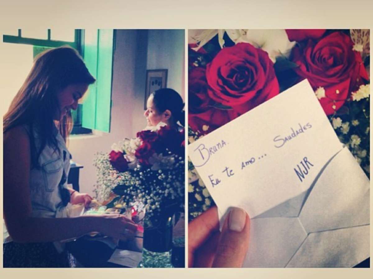 Neymar está longe de Bruna Marquezine, mas não deixa de mimar a amada. Nesta terça-feira (29), o jogador de futebol mandou flores para a atriz, que postou uma foto do presente em seu perfil no Instagram. Na legenda, ela usou as hashtags "#choreiquenemcriança", "#amordaminhavida", "#contandoashoraspratever" e "#aiqueromantico".