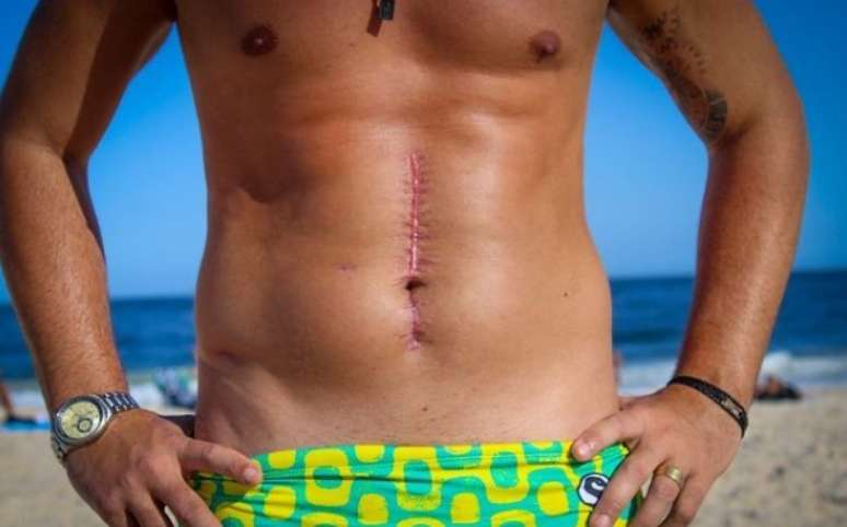 Depois de um período na UTI e usar bolsa de colostomia, Bruno agora está quase 100%. Só continua proibido pelos médicos de fazer esforço. A volta à malhação ainda não tem data. Em seu perfil no Instagram, o muso do maiô verde-limão mostrou a marca que levará para sempre no corpo. “Para vcs que me perguntaram se vou ter coragem de tirar a camisa na praia, por causa da minha cicatriz!!! Está aqui minha resposta!!!”, postou.