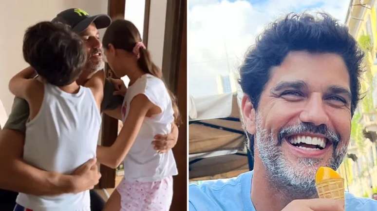 Ator divide sua carreira entre o Rio de Janeiro, onde mora e trabalha, e Milão, na Itália, onde os filhos moram com a mãe. Em seu Instagram, ele abriu o álbum de fotos e posta cliques com as crianças. "Amor quer flutua", disse ele ao registrar o reencontro com Gaia e Elia. "Férias", também postou o galã.