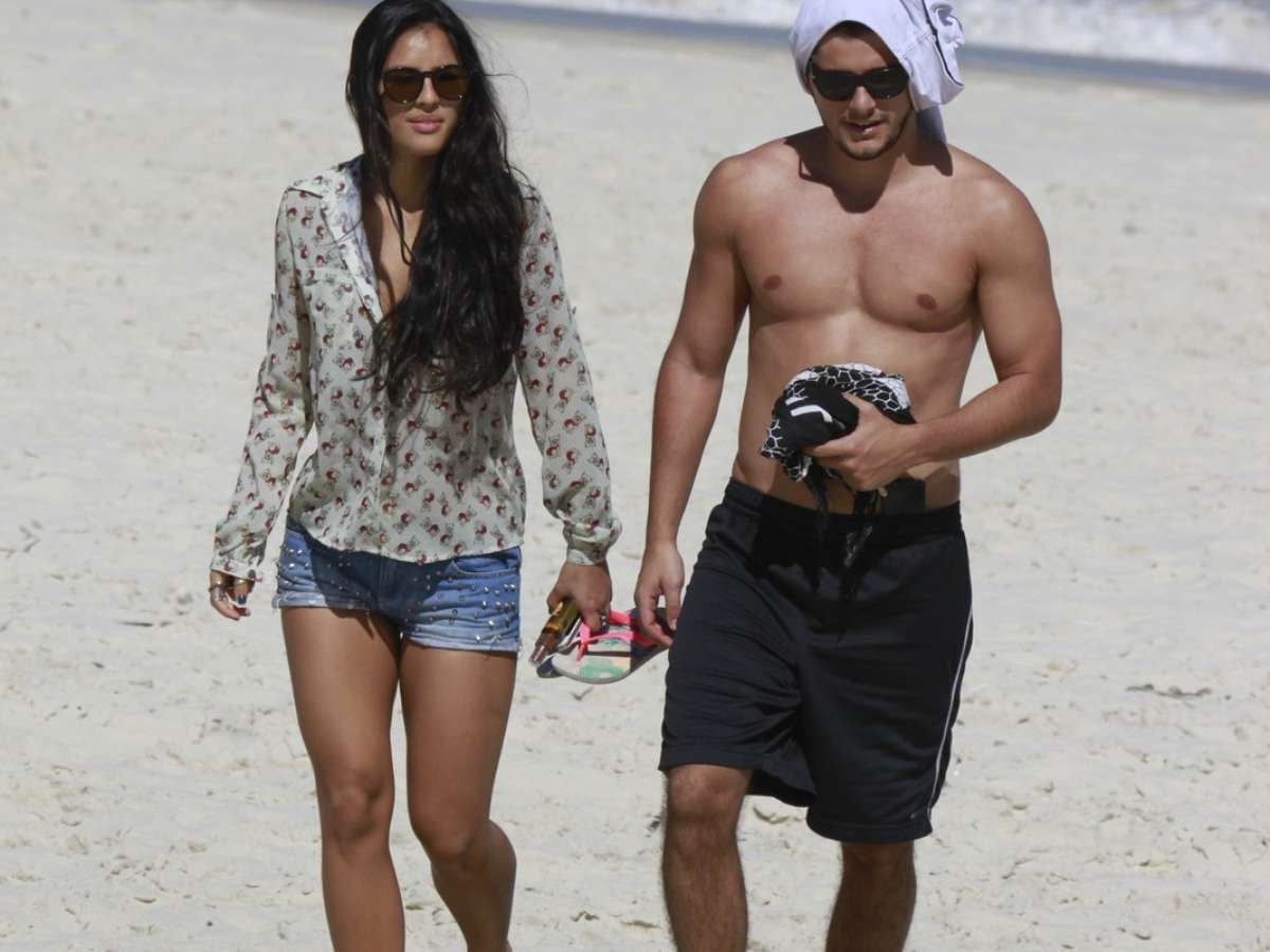 O casal de atores Bruno Gissoni e Yanna Lavigne curtiu o dia ensolarado na praia da Barra da Tijuca, zona oeste do Rio de Janeiro, nesta quarta-feira (21). Deitados na areia, os dois trocaram carinhos, mexeram no celular e relaxaram.