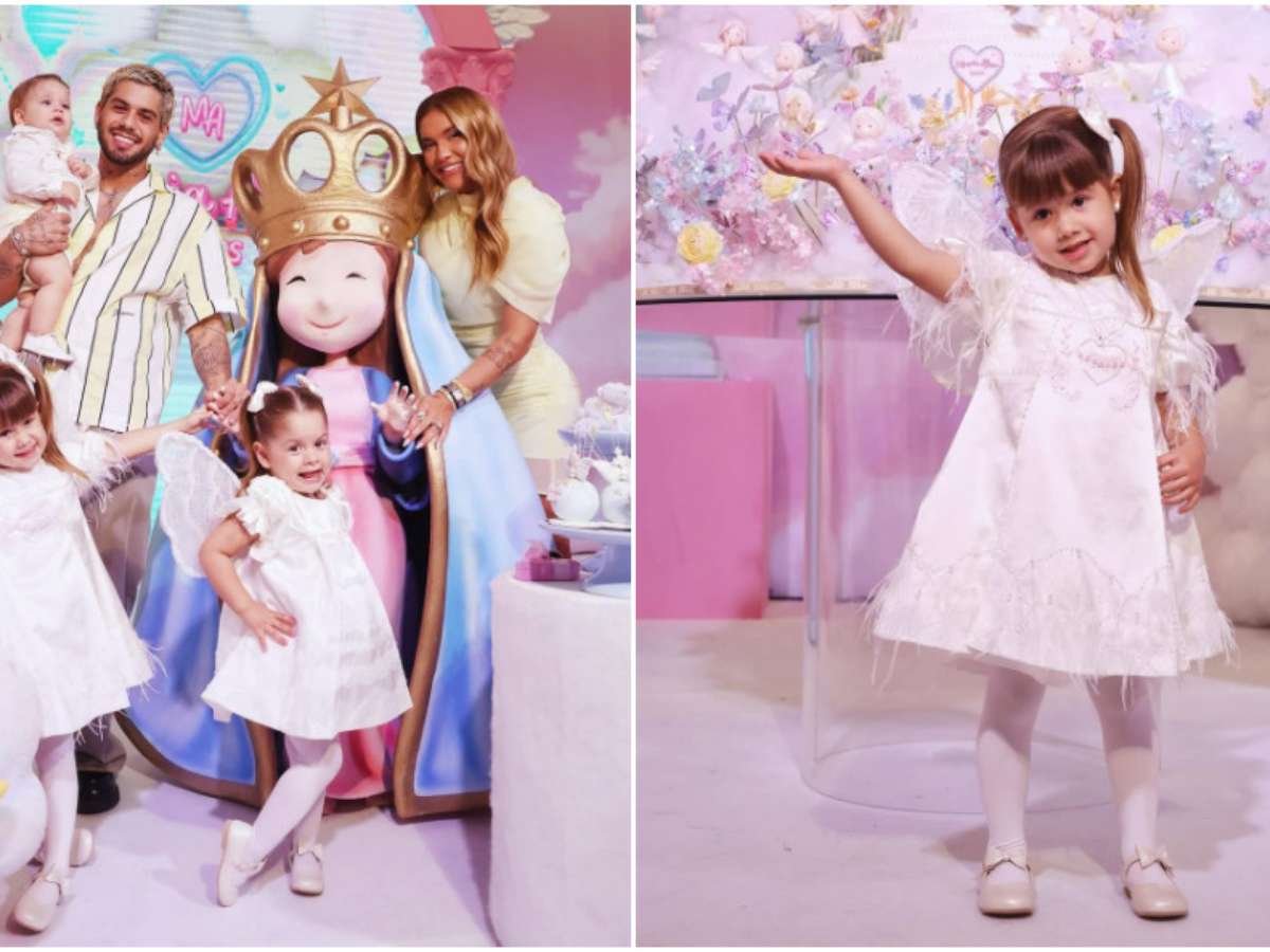 A gigantesca festa teve ainda outros quatro bolos pintados ao vivo, ao lado de uma escultura comestível, em homenagem à idade da filha do casal, que completou 4 anos de idade.