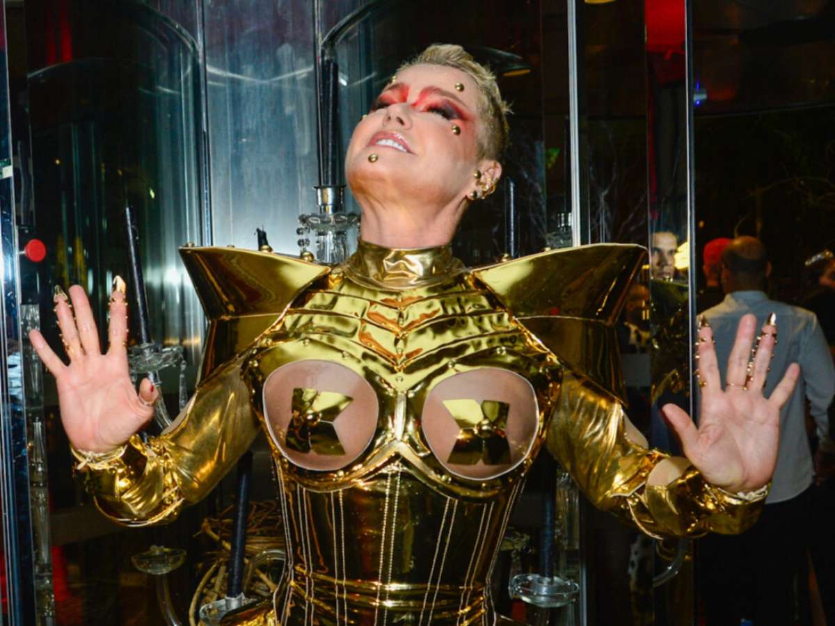 Xuxa Meneghel arrasou aos 60 anos com sua fantasia futurista e ousada para um baile de Dia das Bruxas. A apresentadora deixou o bumbum de fora e envolveu os seios com uma armação