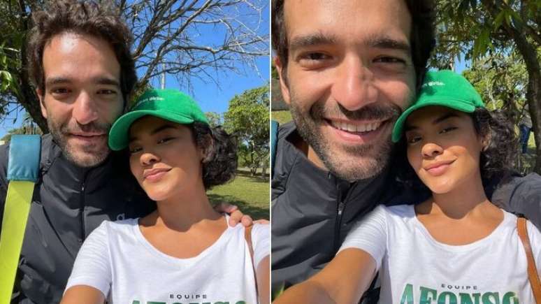 Atores brincaram com a dimensão da cabeça do ator em fotos postadas pela personagem Maria de Fátima (Bella Campos) com Afonso Roitman (Humberto Carrão)