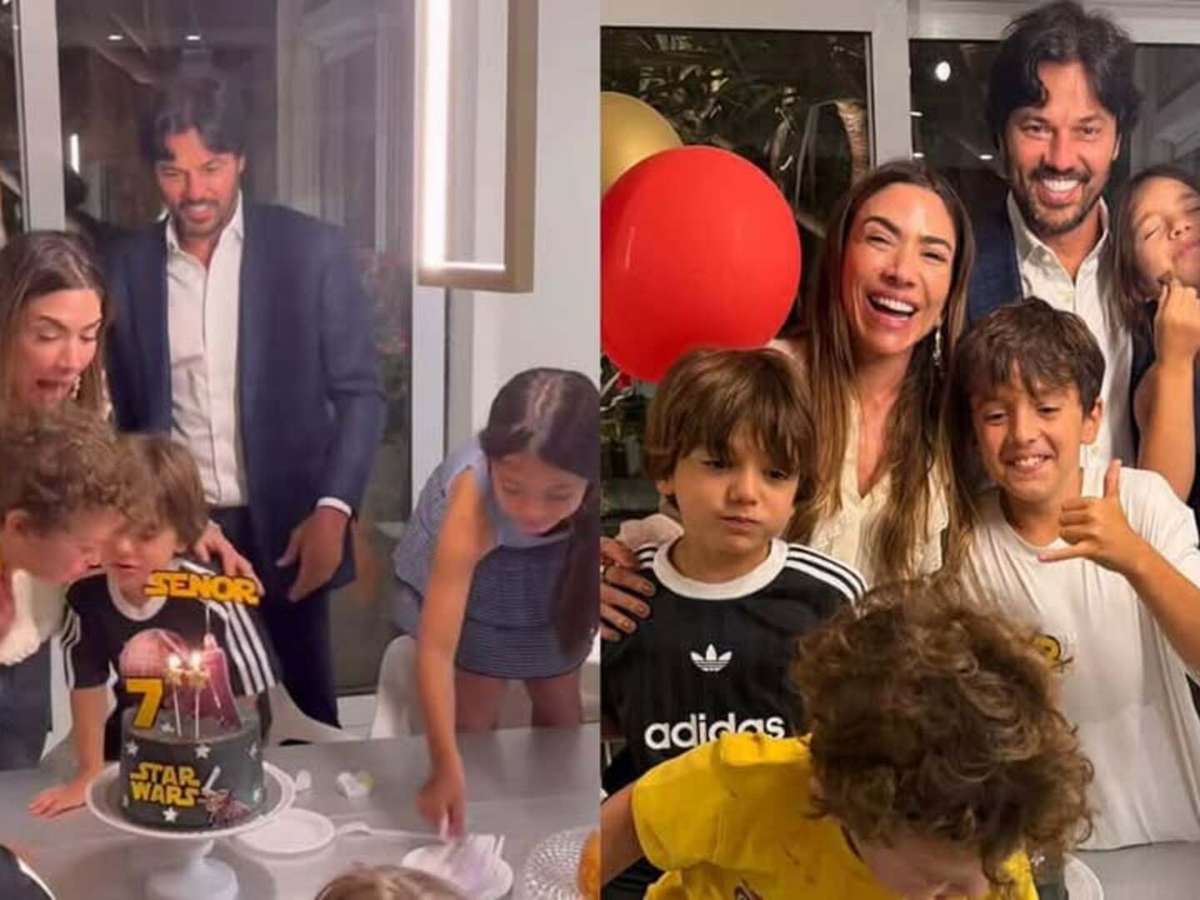 "Deu tudo certo", brincou Patrícia ao comentar sobre a festa, realizada em seu condomínio de luxo, na região metropolitana de São Paulo. Posando para uma foto em família, Patrícia, Fábio e seus três filhos esperavam pelo registro, quando tiveram a imagem invadida pelo pequeno Benjamin, que caminhava pela mesa para pegar docinhos.