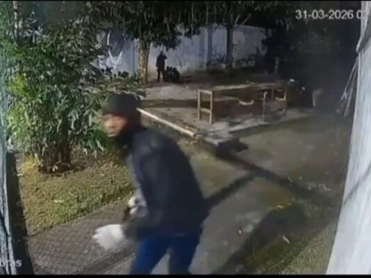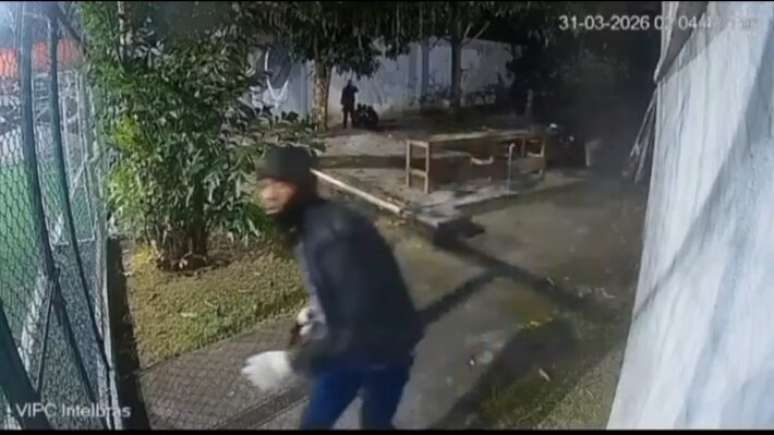 Nos registros, ao menos oito homens aparecem encapuzados, usando luvas e armados, enquanto circulam pela sala da residência. Em outro ângulo, gravado nos fundos da casa, o grupo é visto próximo ao muro antes de seguir em direção ao portão do campo de futebol do artista.
