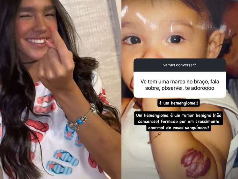A jovem logo explicou que a marca trata-se de um hemangioma, um tumor benigno causado pelo crescimento anormal dos vasos sanguíneos. Ela tranquilizou seus seguidores ao esclarecer que não se trata de uma condição grave.