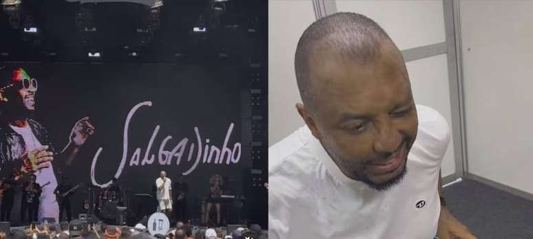 No vídeo, lê-se: "E eu que caí do palco no show de hoje? Quase foi um desastre, mas deu tudo certo", escreveu. Logo depois, vê-se a cena da queda com um detalhe que divertiu o público: com um Salgadinho já caído e fora da visão da plateia, ouve-se um grito do microfone: "O quê que é isso?!".