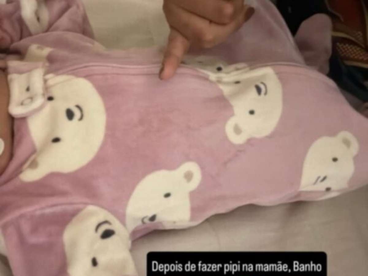 Apesar do susto, a artista lidou com bom humor e mostrou a filha já limpa e vestida. "Depois de fazer pipi na mamãe, banho check", escreveu ela na legenda, exibindo uma selfie ao lado de Zuri, que estava com um macacão lilás estampado com ursinhos.
