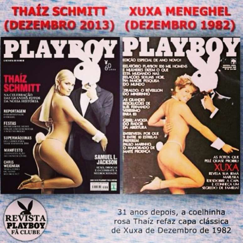 Embora a capa da Playboy de dezembro ainda não tenha sido divulgada oficialmente, a coelhinha Thaíz Schmitt não só postou a capa do que deve ser a próxima edição, mas também um comparativo.